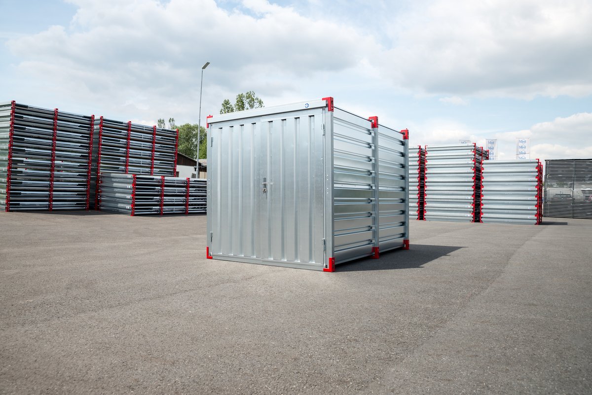 Per una maggiore flessibilità di movimentazione, i box smontati possono essere facilmente spostati a mano. Una volta assemblati, possono essere trasportati con un carrello elevatore o una gru. Ciò è garantito da appositi fori per il fissaggio delle funi nelle staffe angolari, che assicurano un trasporto sicuro e stabile.